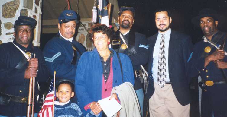 Jason Samuel, Phyllis and David Brown Joined by Reenactors Representing the 54th Massachusetts Infantry